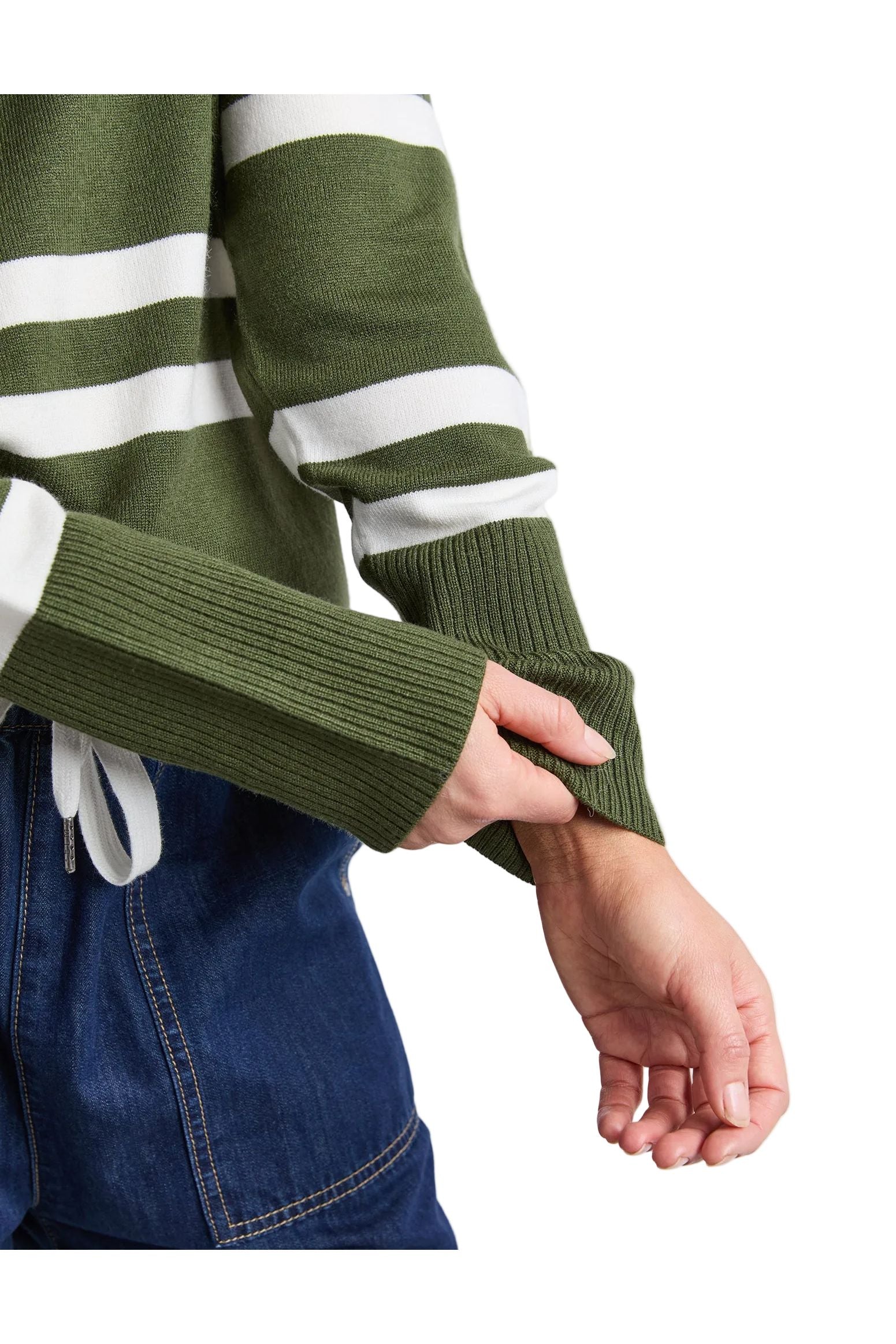 - Ribbed neck, cuffs and hemband