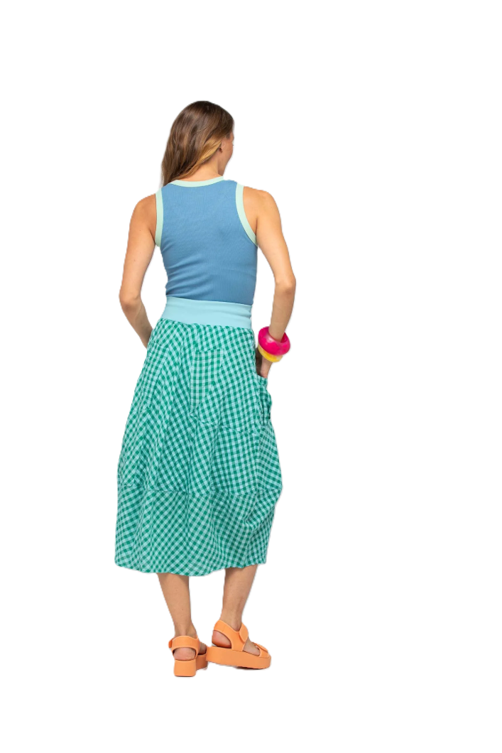 BOOM SHANKAR GURU SKIRT - GREEN SEERSUCKER